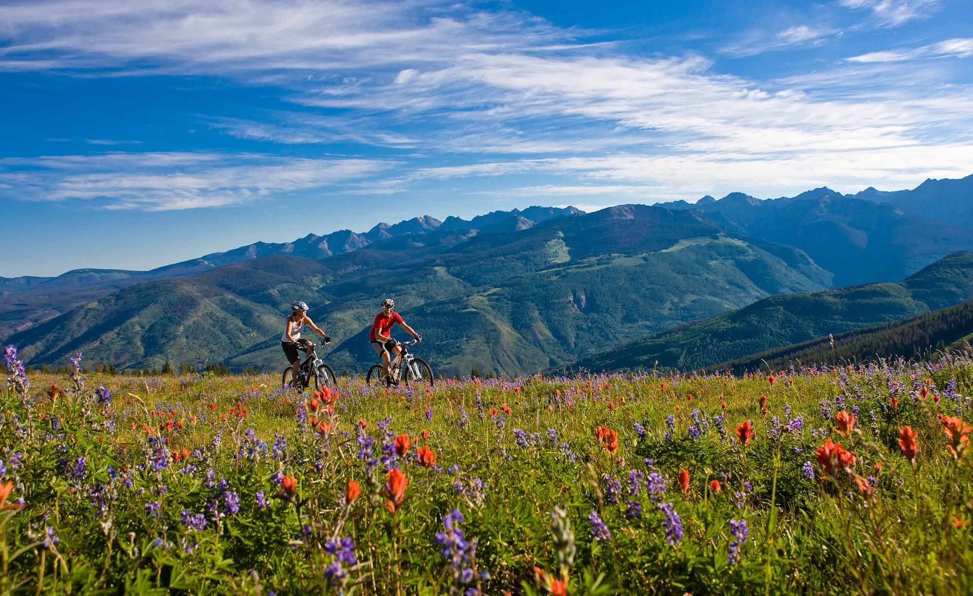 Bringing your own bike is optional, because Vail has plenty of bike-rental shops that make it easy to gear up for the day. You’ll find full-day and half-day rentals across town, with pickup locations near trailheads, bike paths and gondola access points. Most rental packages include a helmet — and shops typically carry sizes for adults and kids. Local staff can help match you with the right wheels and gear for your route and skill level.